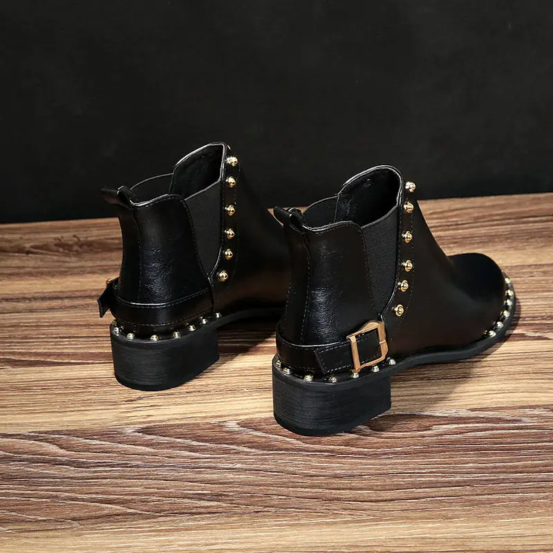 Ботинки женские на толстом каблуке, короткие женские ботинки на рез...