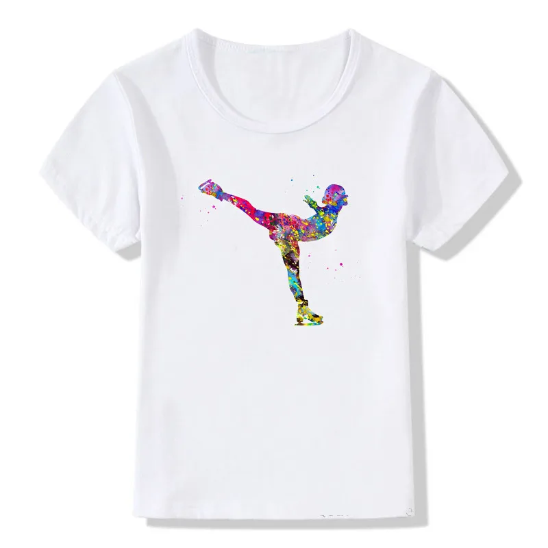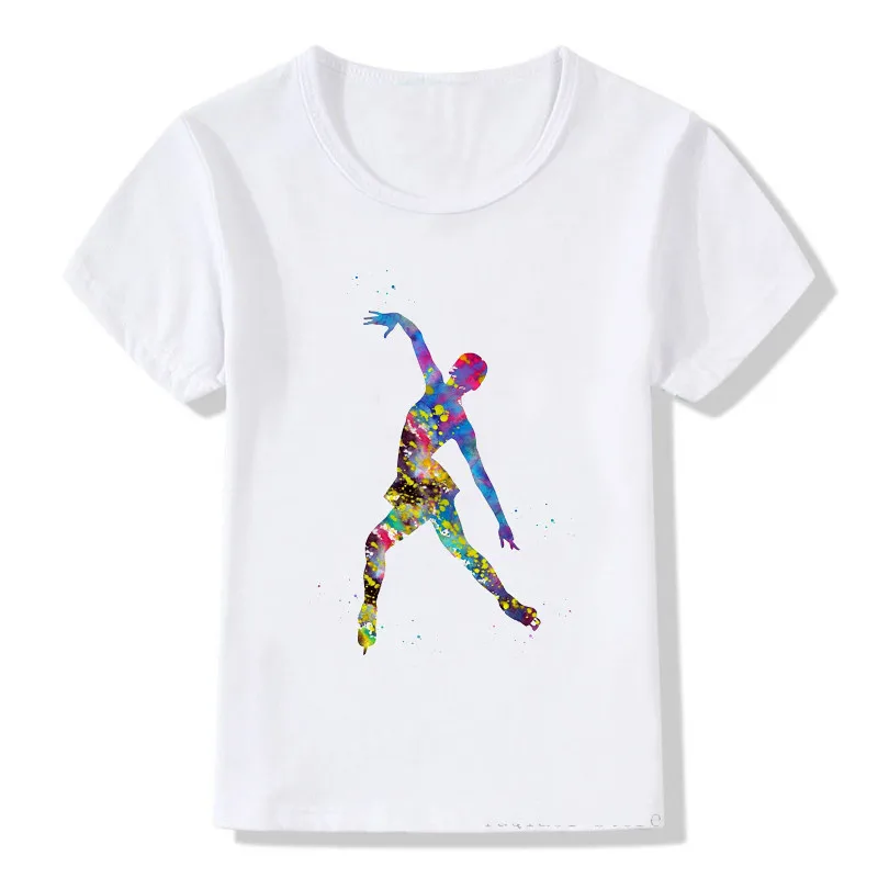 2021 Детская футболка с акварельным принтом для катания на коньках, милые летние топы, одежда для девочек, белая футболка на заказ, детские футболки