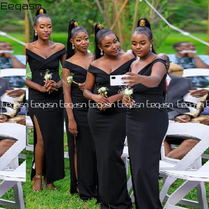 Сексуальные черные платья подружки невесты с V-образным вырезом и Боковым Разрезом, длинное женское платье-Русалка для свадебной вечеринки, платье подружки невесты 2021