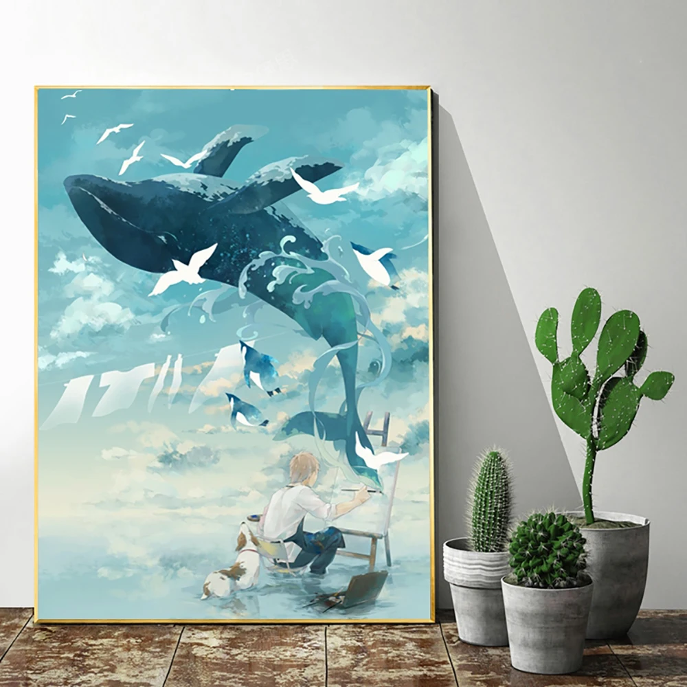 Домашний декор, 5D алмазная вышивка, картина, круглая губка, аниме,...