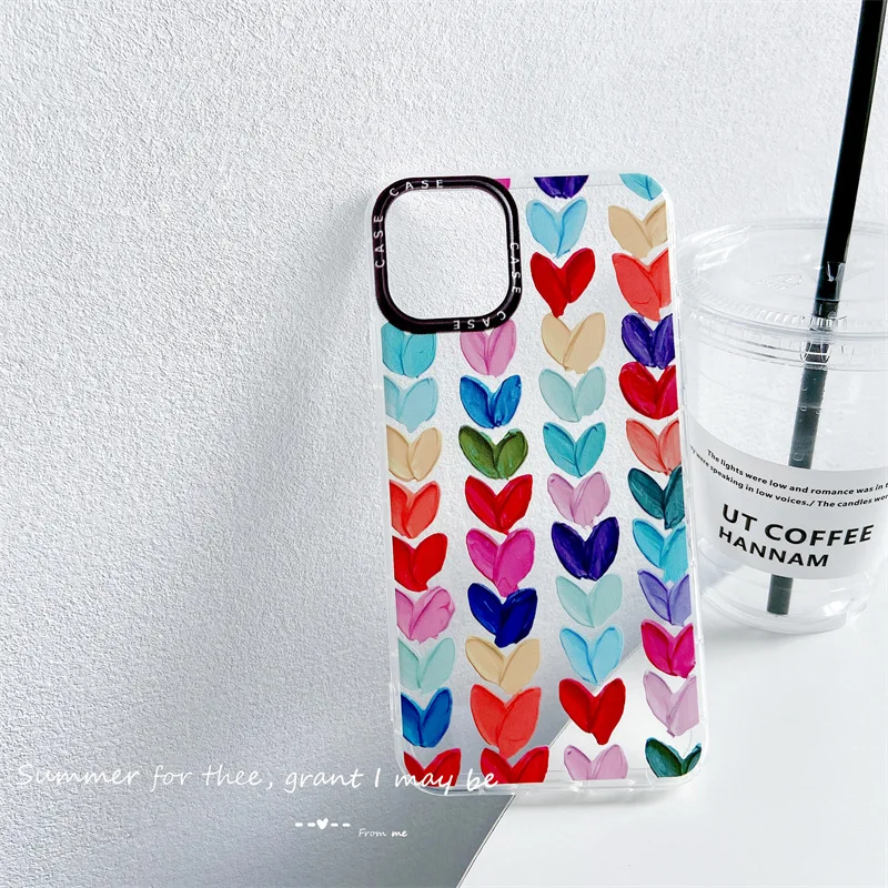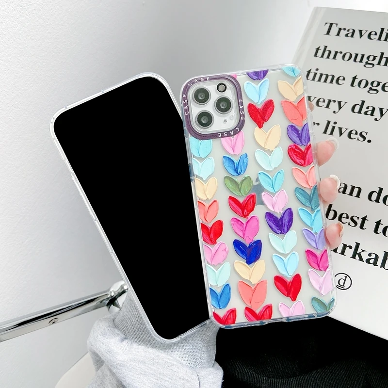 Мультяшный цветной чехол для телефона с любовным сердцем для iPhone 11 12 Pro Max XS Max X XR 7 8 Plus SE 2020, картина маслом, мягкий бампер, задняя крышка