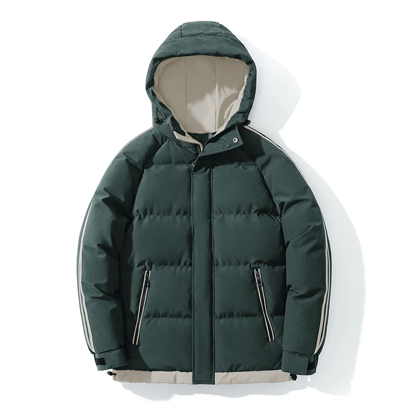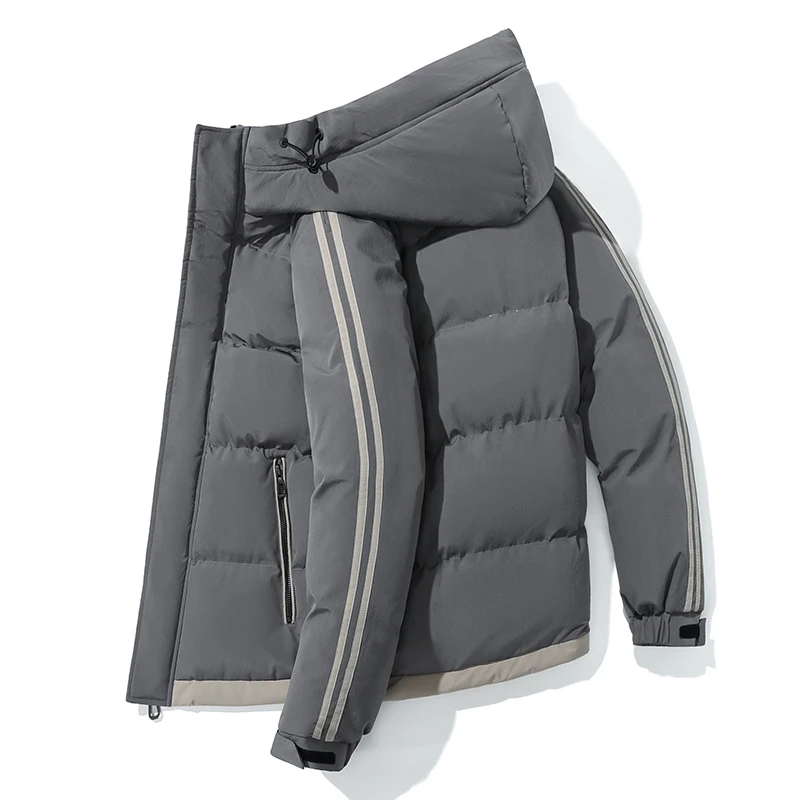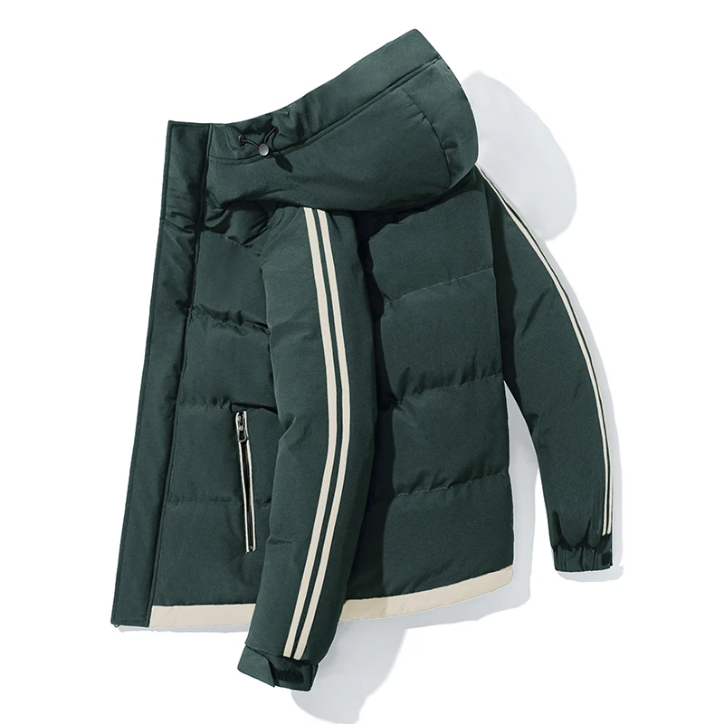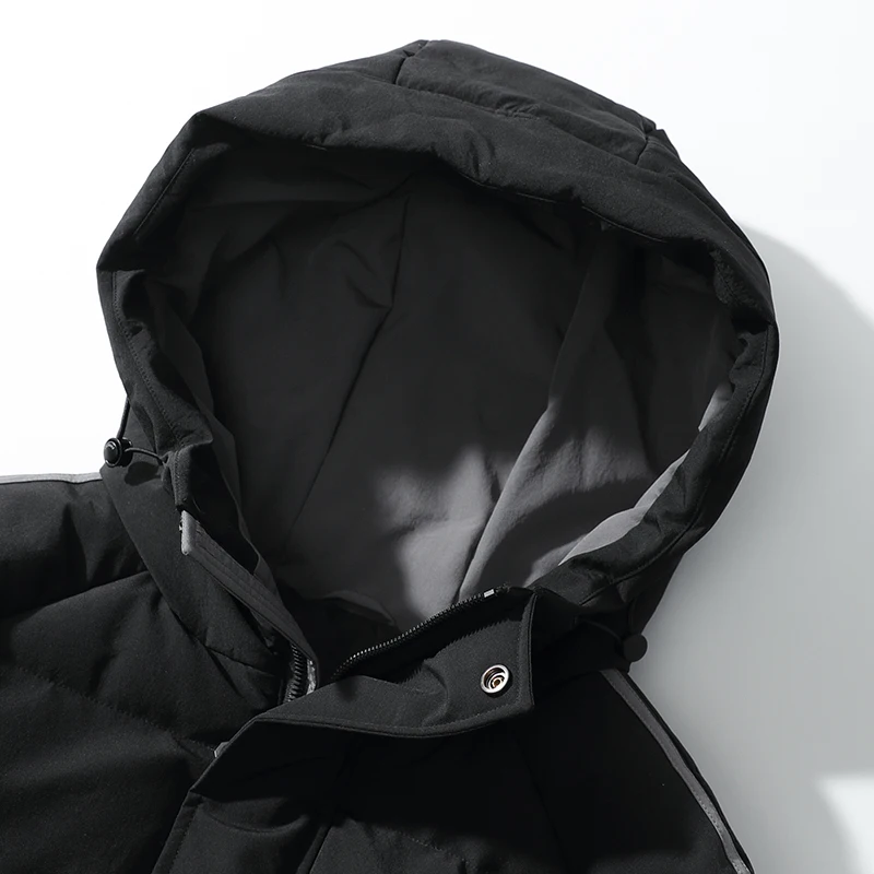 Мужской пуховик с капюшоном, теплая водонепроницаемая однотонная ку...