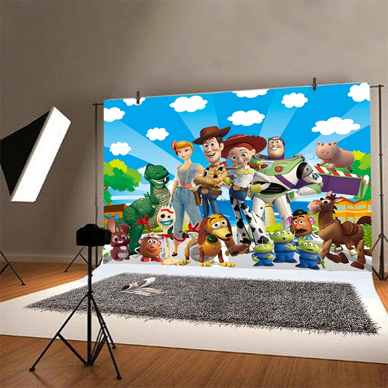Фон для фотосъемки с изображением истории игрушек, дня рождения, голубого неба и белых облаков, детский фон для фотосъемки, реквизит для фотосъемки, декоративный баннер