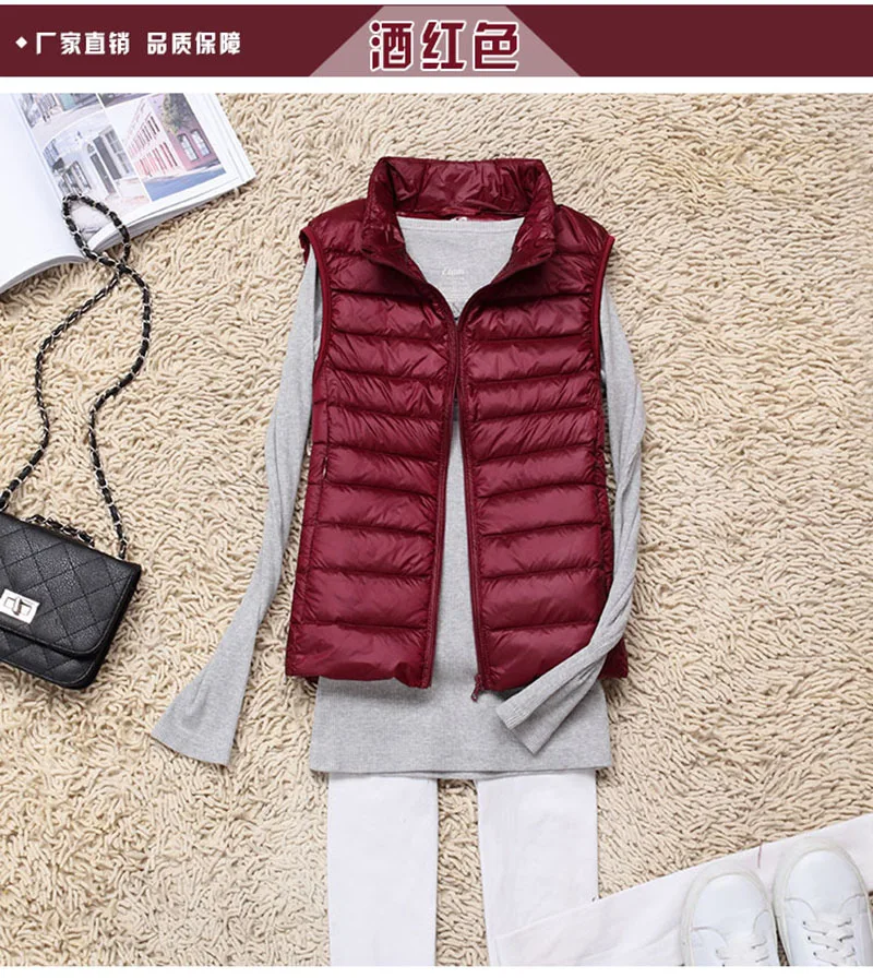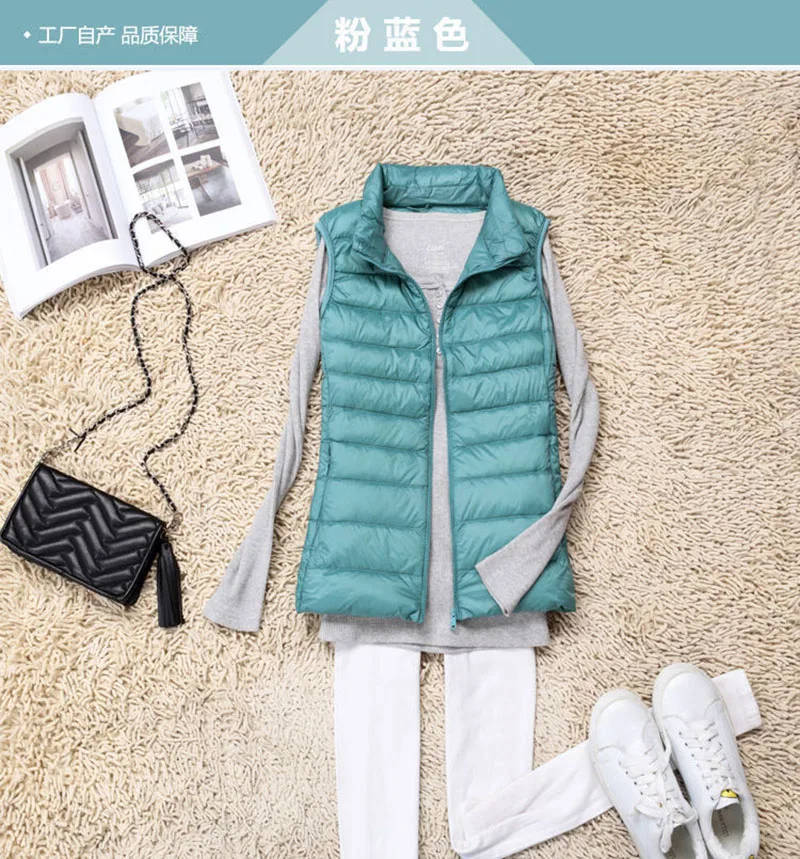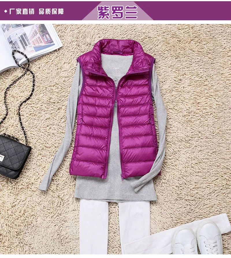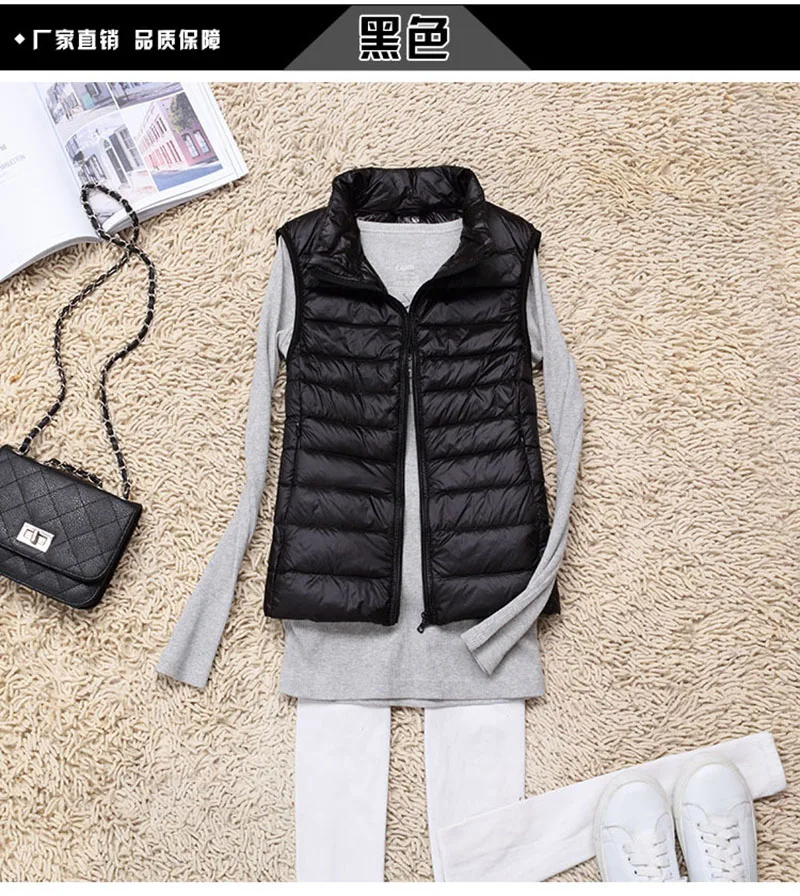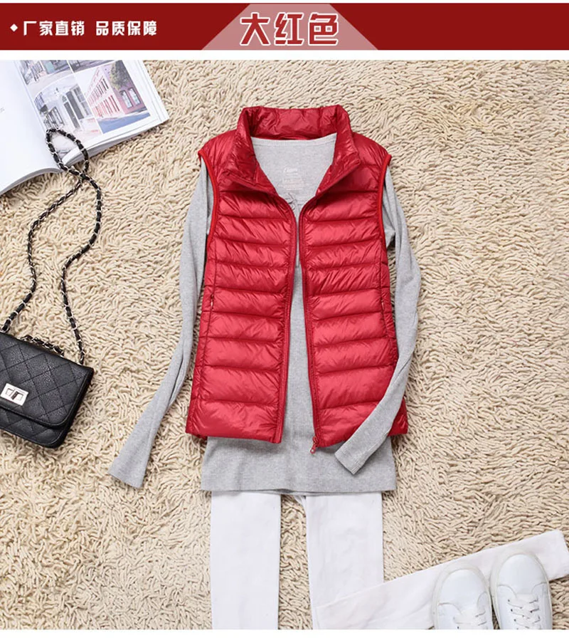 Женский жилет, 90% белый жилет на утином пуху, мягкий, теплый, тонк...
