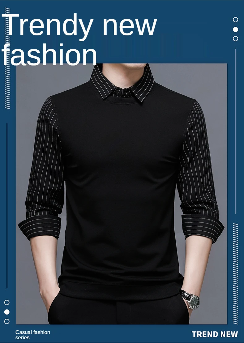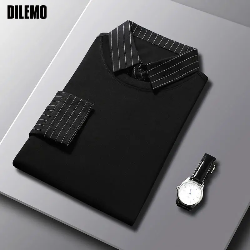 Мужской трикотажный пуловер с воротником, Черный Повседневный джемпер