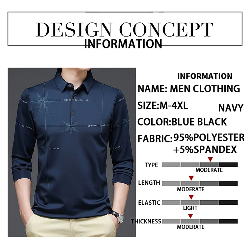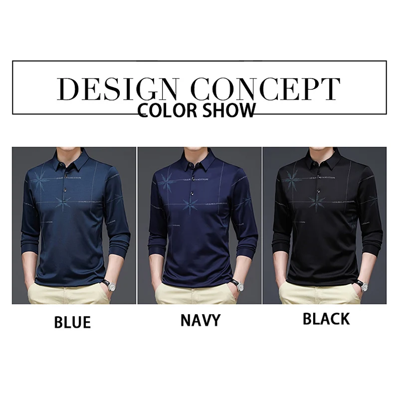 Мужская Осенняя футболка-поло TFETTERS, с длинным рукавом, отложным воротником, защищающая от морщин, в Корейском стиле