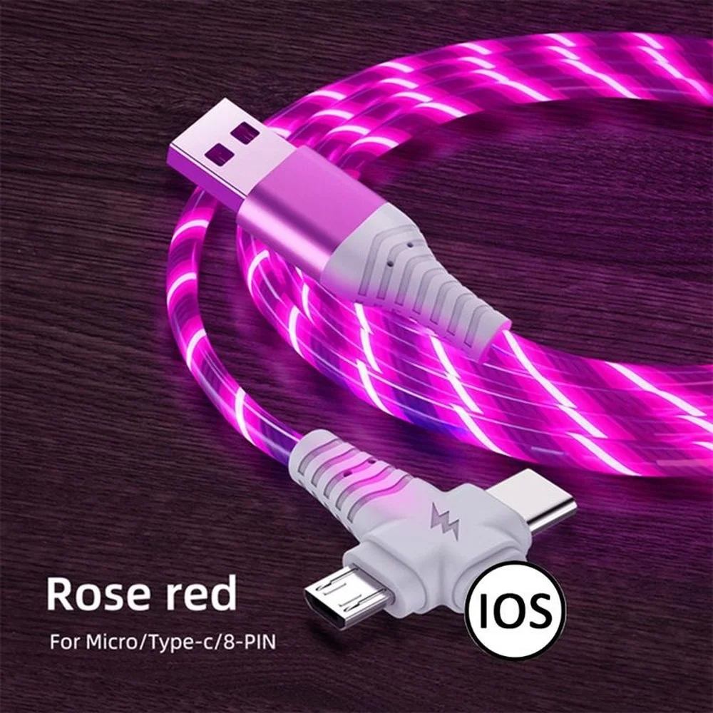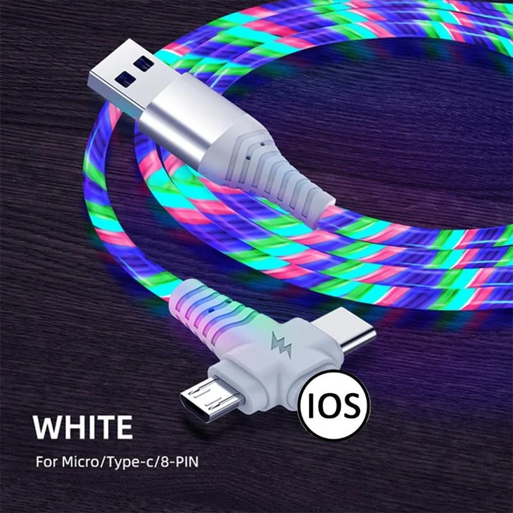Зарядный кабель 3 в 1 со светодиодной подсветкой, 40 Вт, Micro USB Type-C