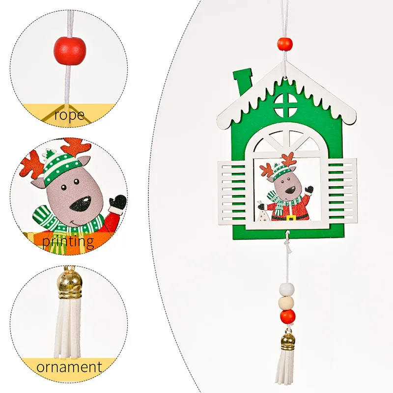 Рождественские украшения, деревянный маленький дом, подвеска с кист...