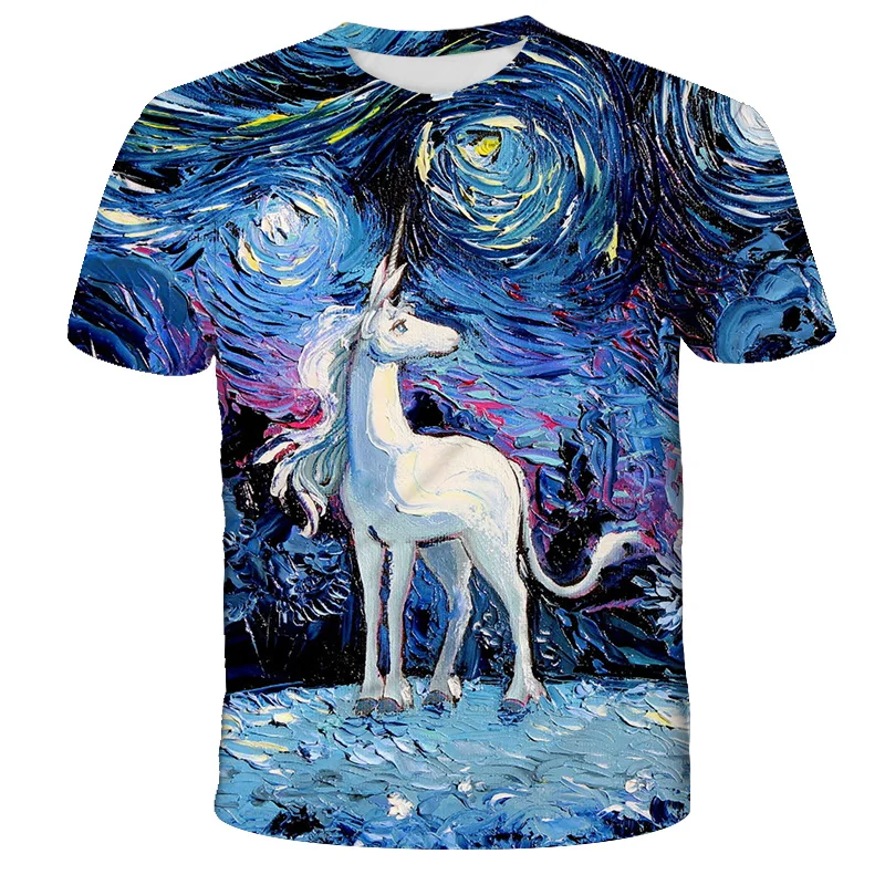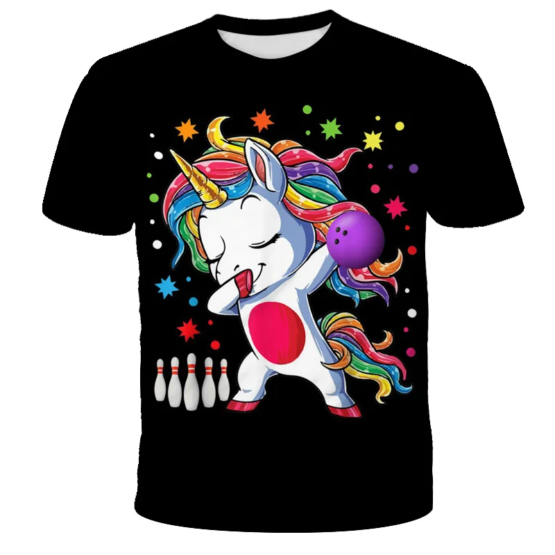 Футболка с 3D принтом единорога, одежда для девочек, футболка с мил...