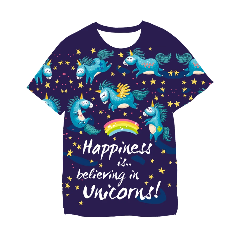 Футболка с единорогом для девочек, футболка с мультяшным 3d-анимаци...