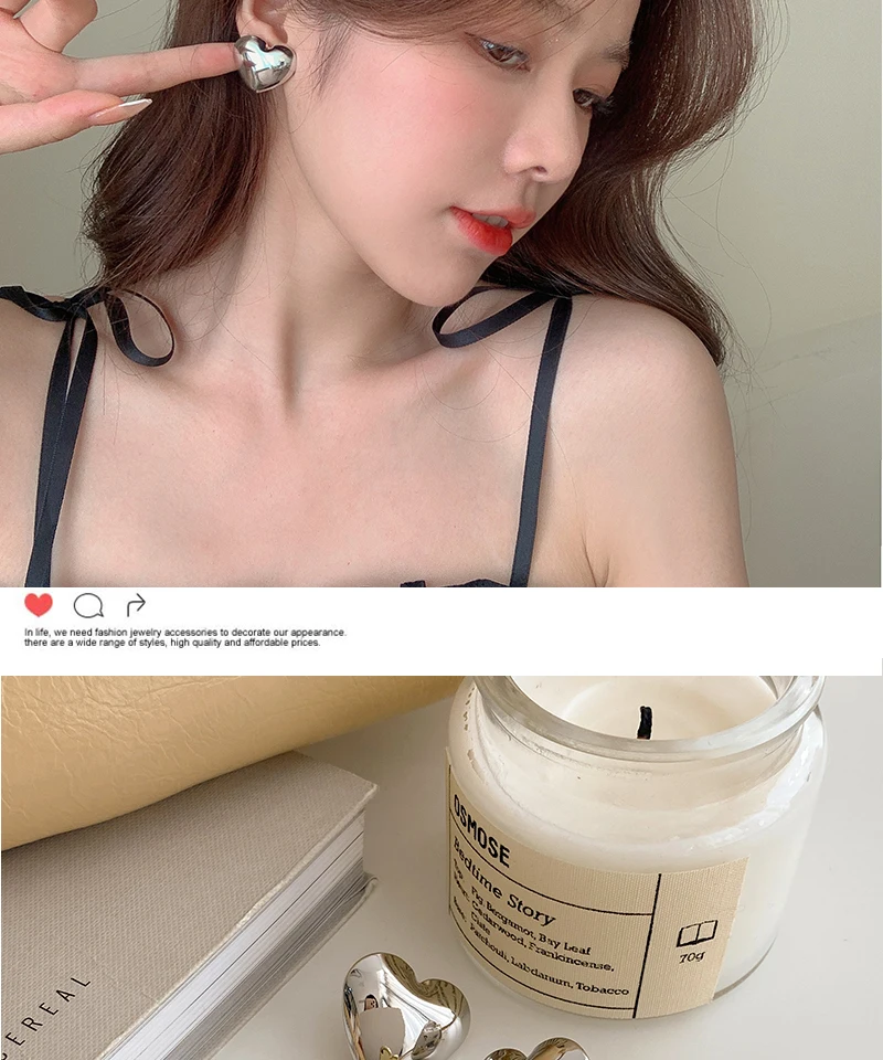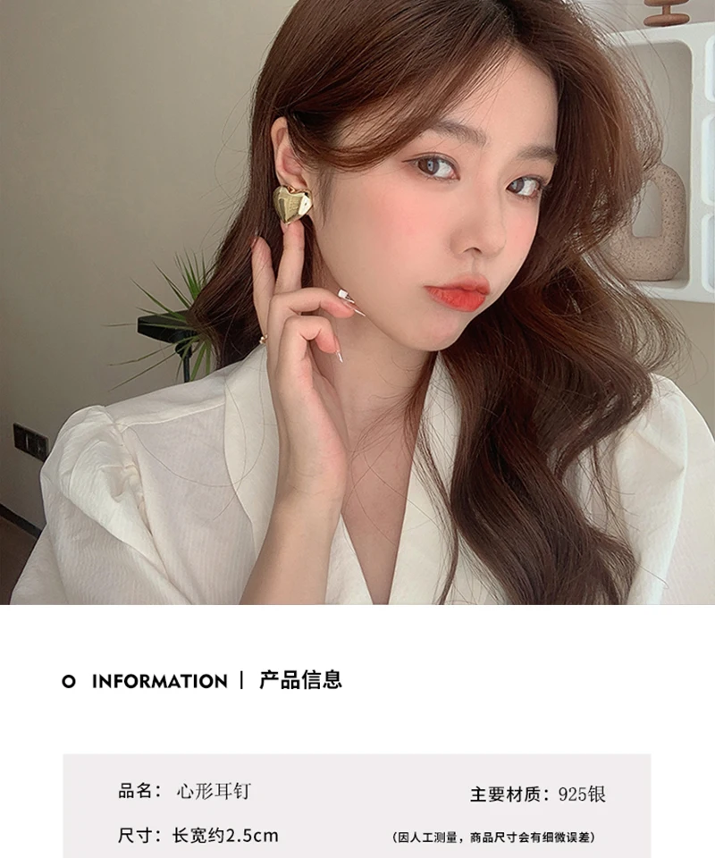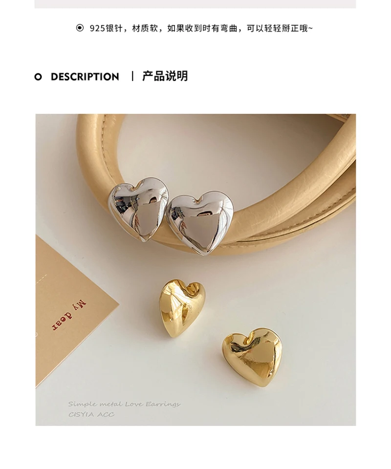 Простые корейские гладкие металлические серьги-гвоздики в форме сердца для женщин модные аксессуары для новых ювелирных изделий для девушек на лето 2021