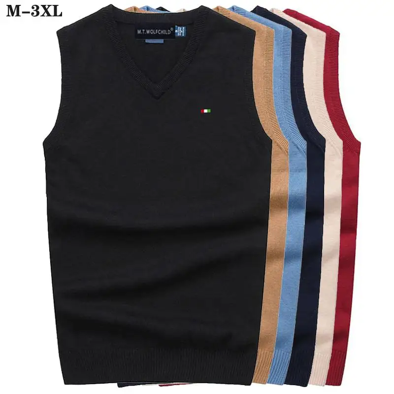 Мужской вязаный жилет без рукавов, Повседневный свитер из 100% хлоп...