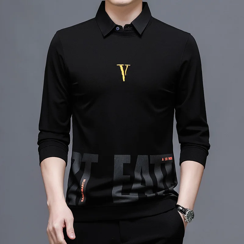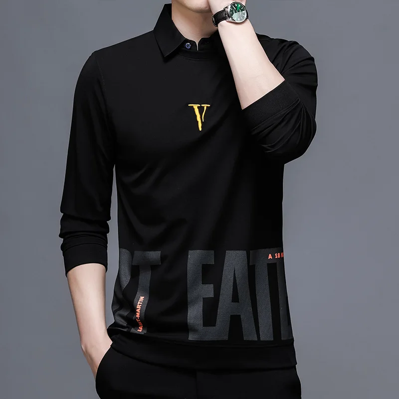Мужской трикотажный пуловер с воротником, Черный Повседневный джемпер