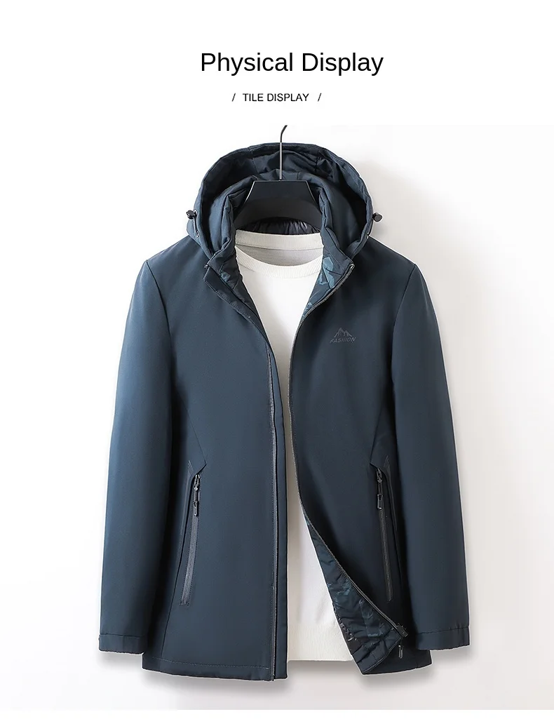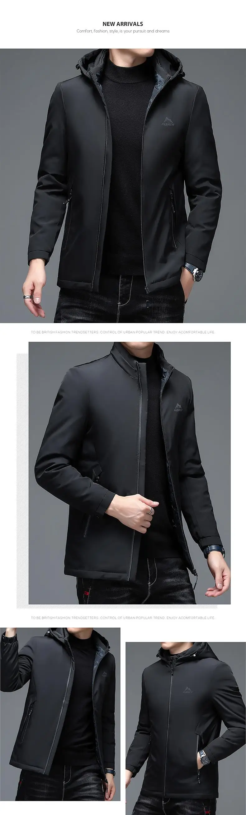 Мужская теплая куртка на утином пуху, Повседневная ветровка с капюшоном, верхняя одежда для зимы, 2022