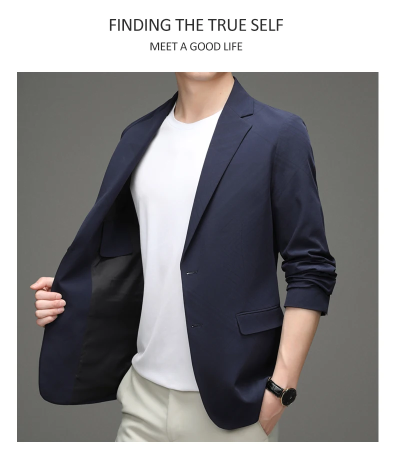 Новинка 2022, дизайнерский брендовый роскошный Повседневный модный темно-синий мужской блейзер для вечерние, элегантная облегающая мужская одежда