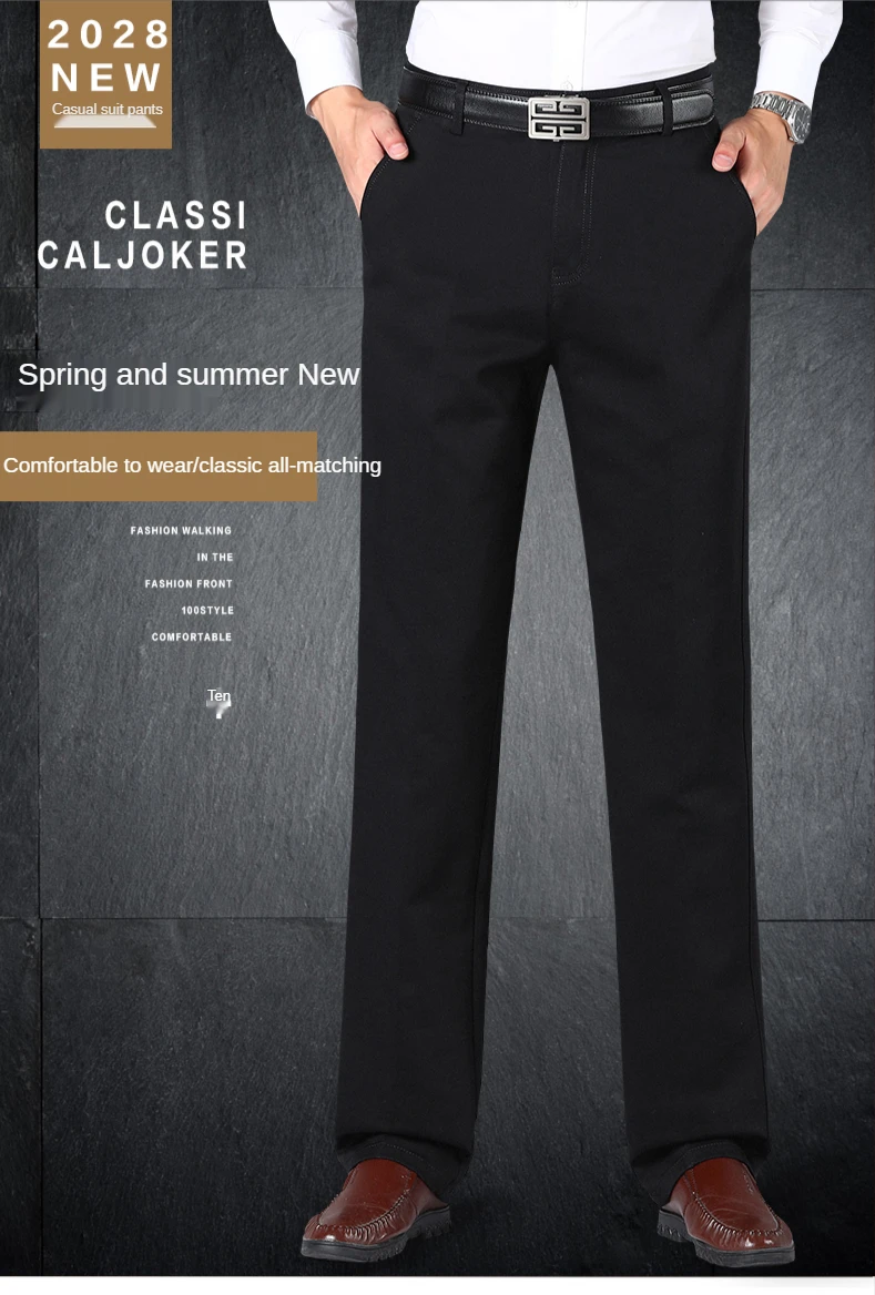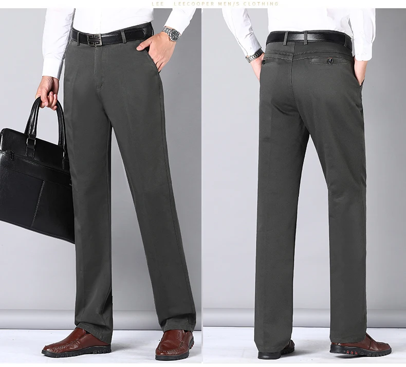 Мужские прямые брюки из натурального хлопка, повседневные длинные брюки стандартного кроя, 100% хлопок