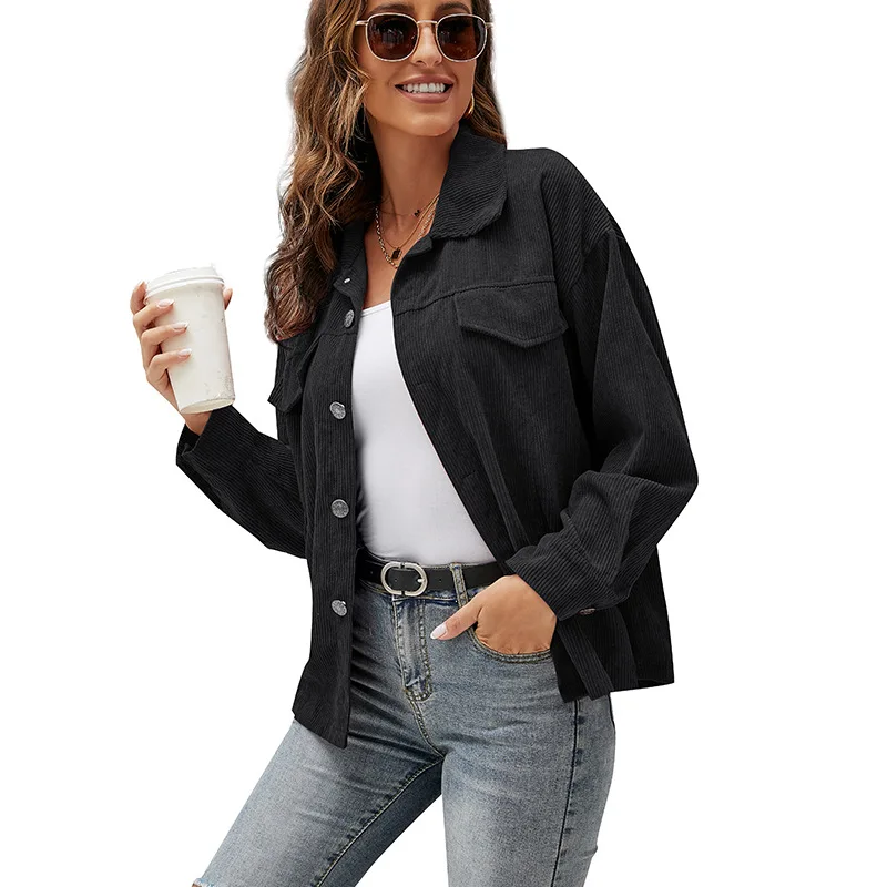 Женская Вельветовая куртка, Однотонная рубашка с отложным воротнико...