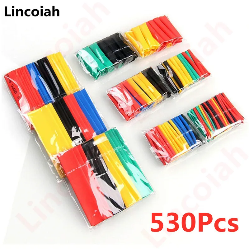 530 шт.компл. Полиолефиновая термоусадочная трубка в ассортименте, кабель, изолированная трубка, фотоэлемент 2:1, водонепроницаемая трубка