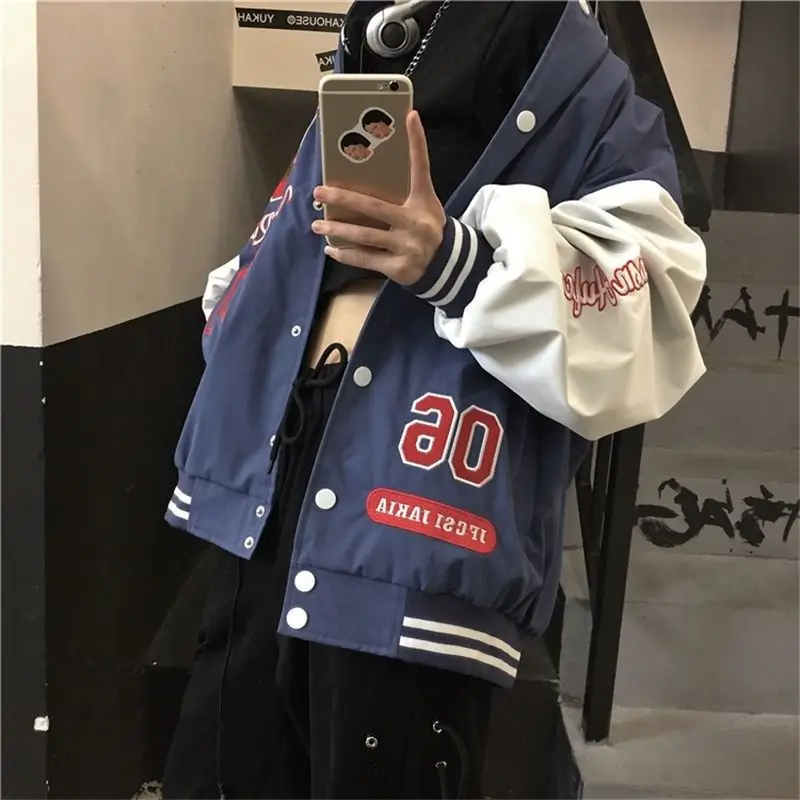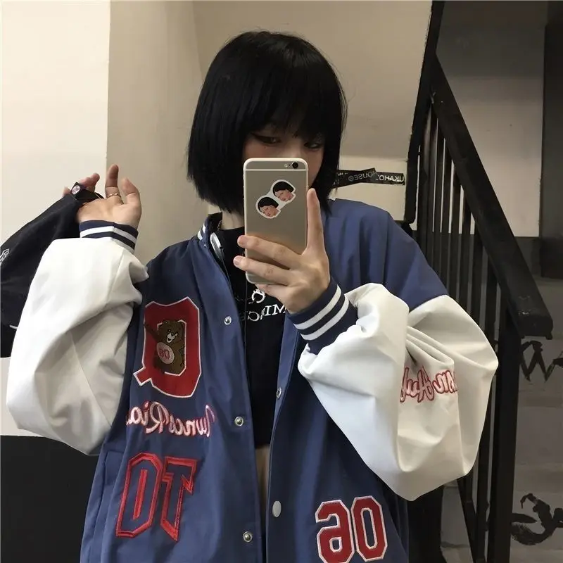 Женская винтажная бейсбольная куртка в стиле Харадзюку, свободная к...