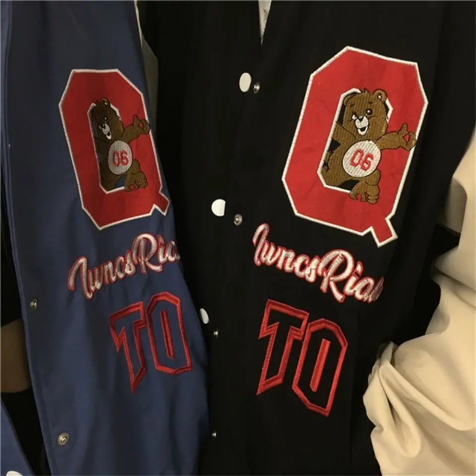 Женская винтажная бейсбольная куртка, свободная куртка большого размера в Корейском стиле, с надписью медведя, весна 2021