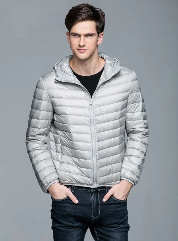 Мужская зимняя и осенняя куртка на белом утином пуху, мужские ультралегкие пуховики с капюшоном, теплая верхняя одежда, пальто, парки, уличные