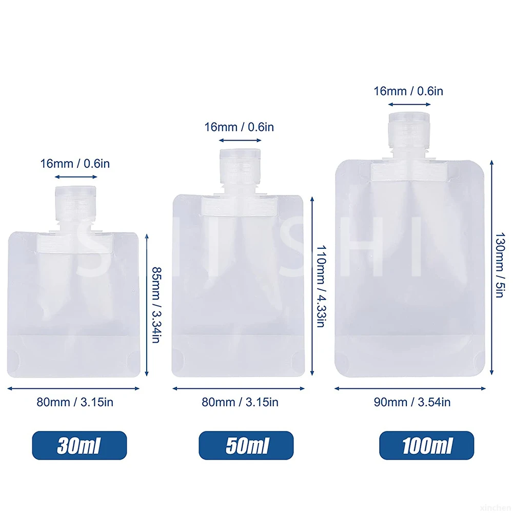 Дорожный многоразовый раскладной упаковочный мешок, пустой пластиковый отжимаемый мешок с носиком для шампуня, лосьона, 30 мл, 50 мл, 100 мл, 50 шт.