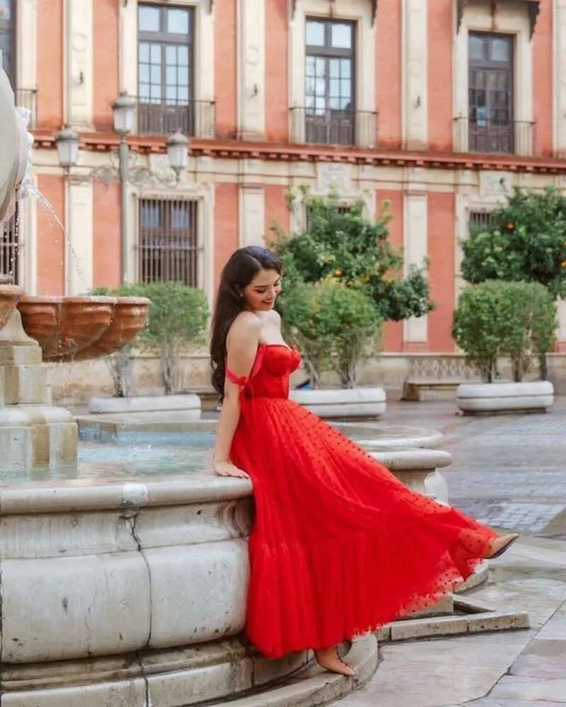 Красные платья для выпускного вечера 2021, Тюлевое платье в горошек длиной до щиколотки, официальное вечернее платье, дешевые короткие платья на выпускной