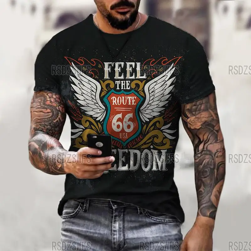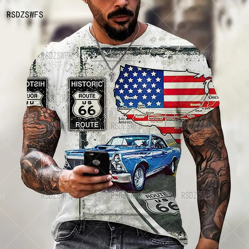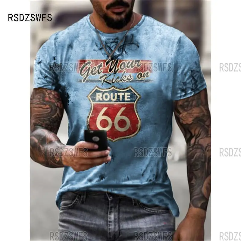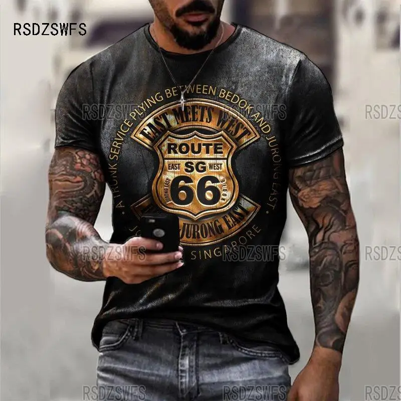 Футболка 66 US Highway 3D, Летний Новый Стиль, впитывающий пот и ды...