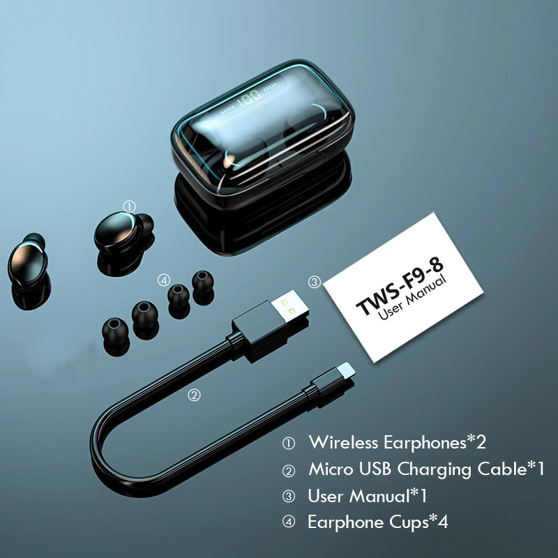Bluetooth-наушники с цифровым дисплеем, TWS F9