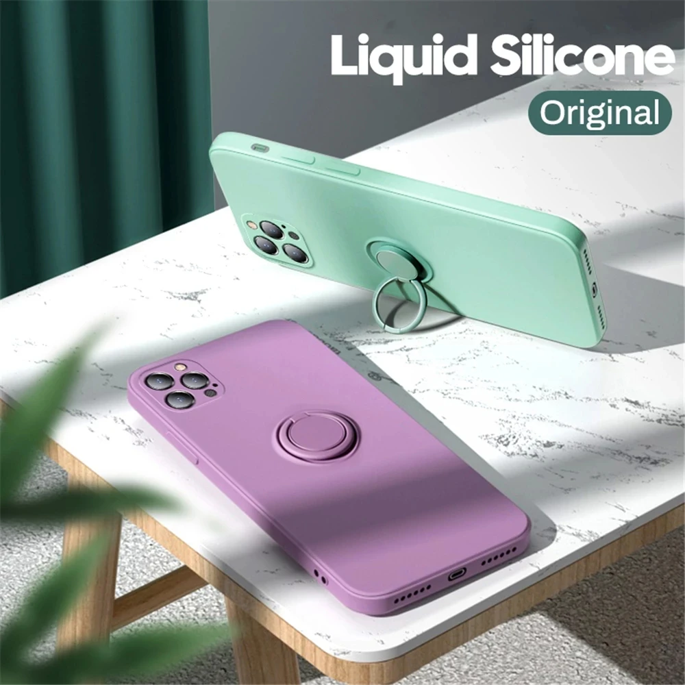 FeaturesOriginal Liquid Silicone Magnetic Ring Holder Stand Phone Case iPhone