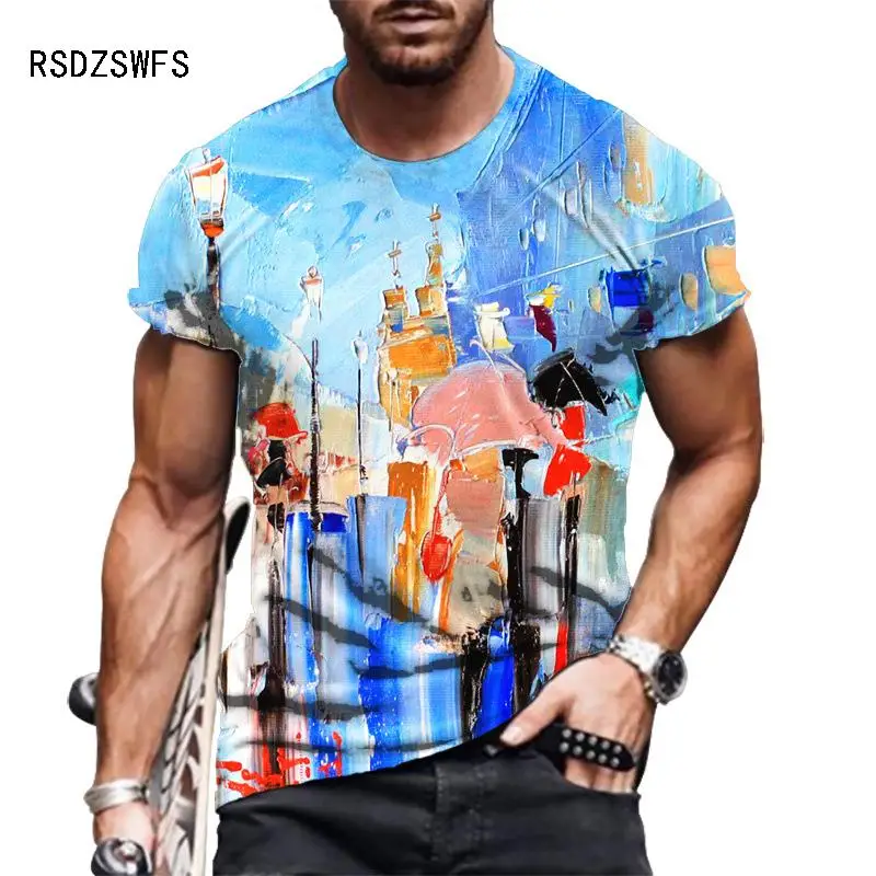 Мужская Базовая футболка с 3D принтом, новинка 2021, летняя повседн...