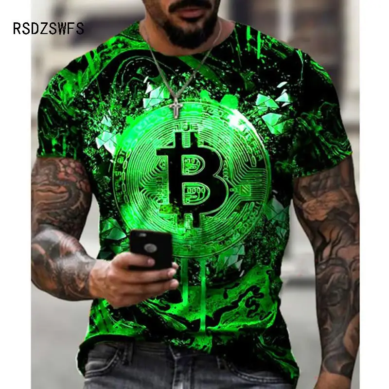 Модная футболка с 3D-принтом биткоина для мужчин, летняя уличная од...