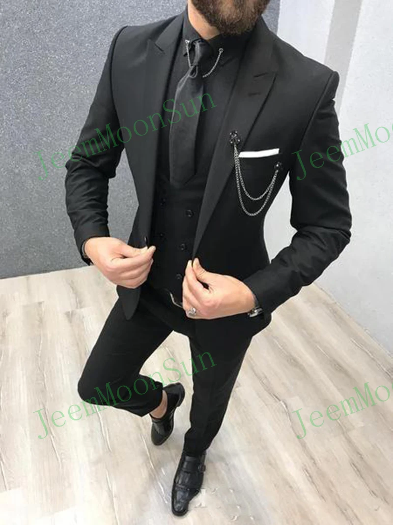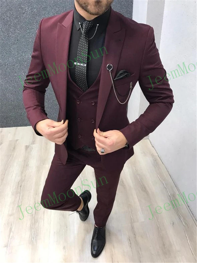 Сделанный на заказ Узкий покрой кремовые мужские костюмы из 3 предметов для свадьбы 2021 смокинг для жениха с заостренным лацканом Мужская куртка жилет брюки мужские костюмы