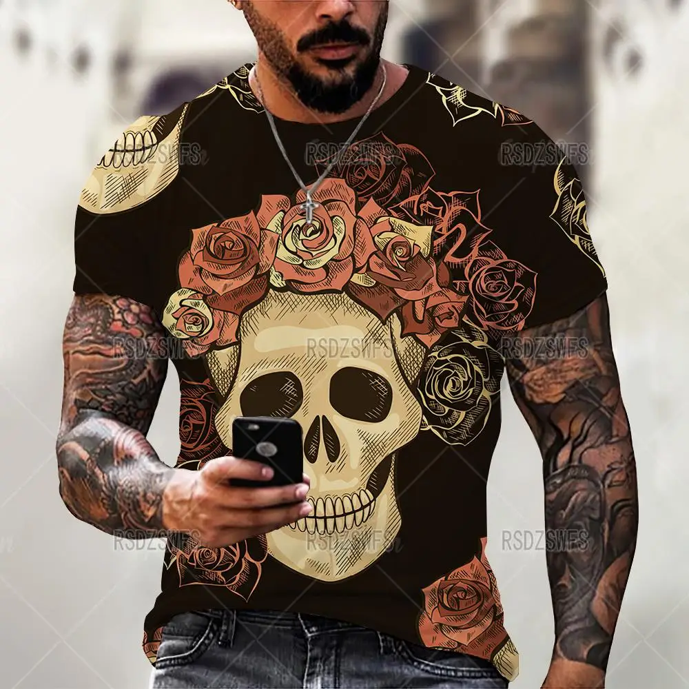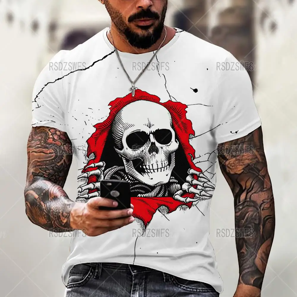 Футболка мужская с 3D-принтом черепа, модная дышащая спортивная рубашка с коротким рукавом, топ в стиле унисекс, уличная одежда, лето