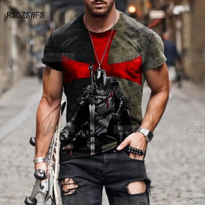 Мужская футболка с 3D-принтом Templar, летние топы с перекрестным рисунком, уличный стиль, модные мужские футболки с коротким рукавом, спортивная одежда для фитнеса