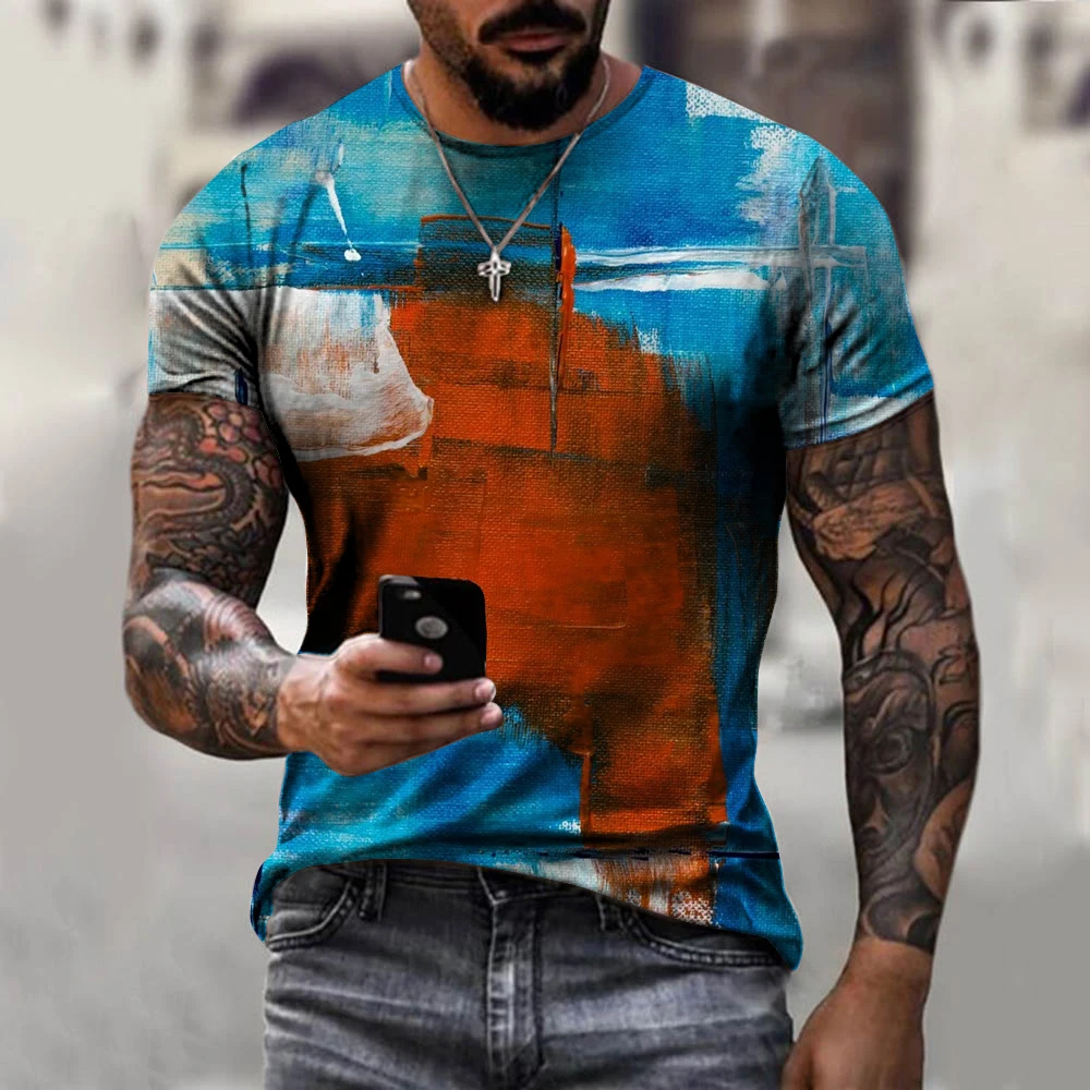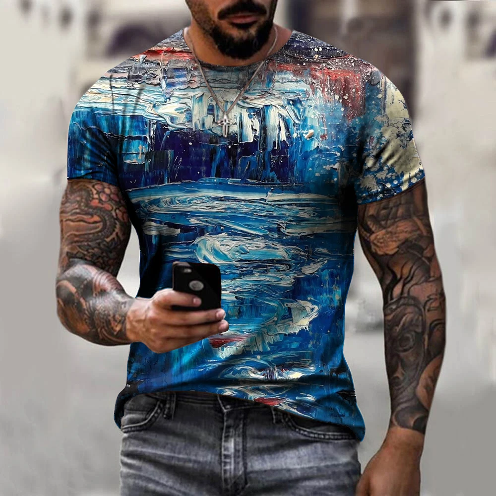 Футболка мужская летняя с 3D-принтом, Повседневная дышащая рубашка с рукавами, с круглым вырезом, с рисунком природного пейзажа, масляная живопись