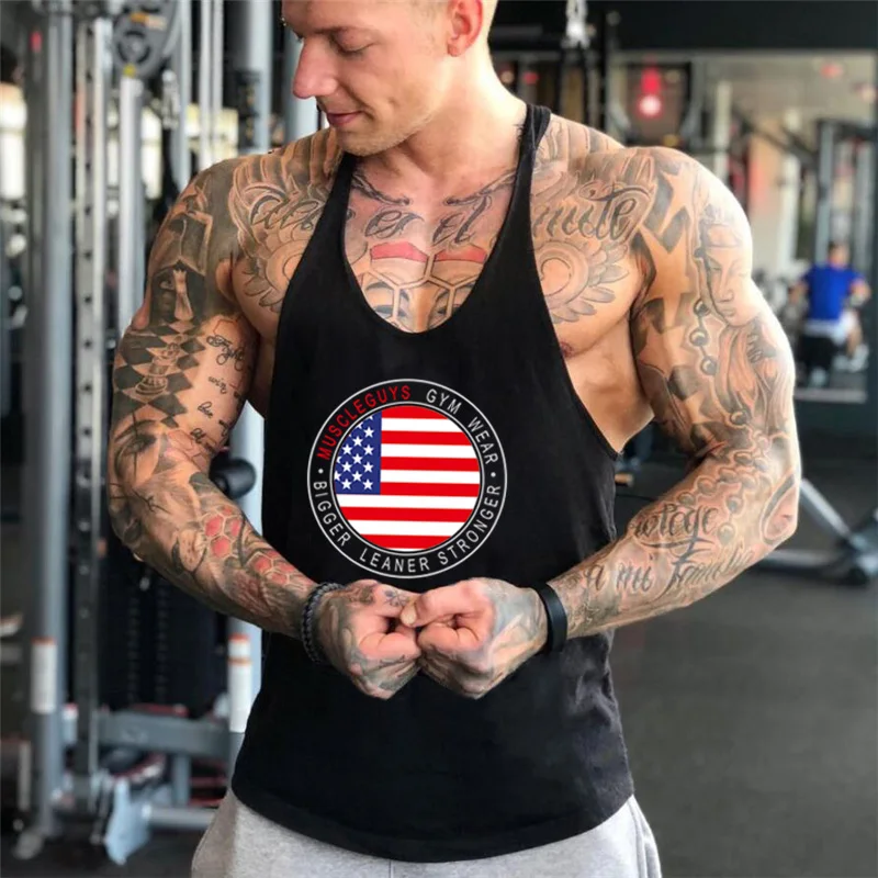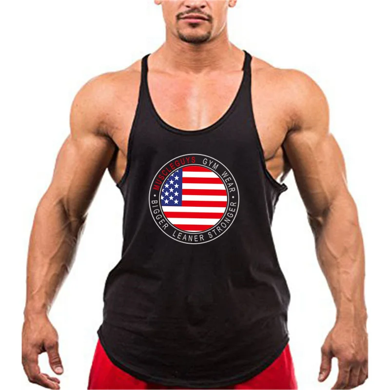 Новейшая брендовая одежда для тренажерного зала, майка для бодибилдинга и фитнеса, мужская хлопковая рубашка без рукавов с флагом США, Мужская майка, размеры M-XXL