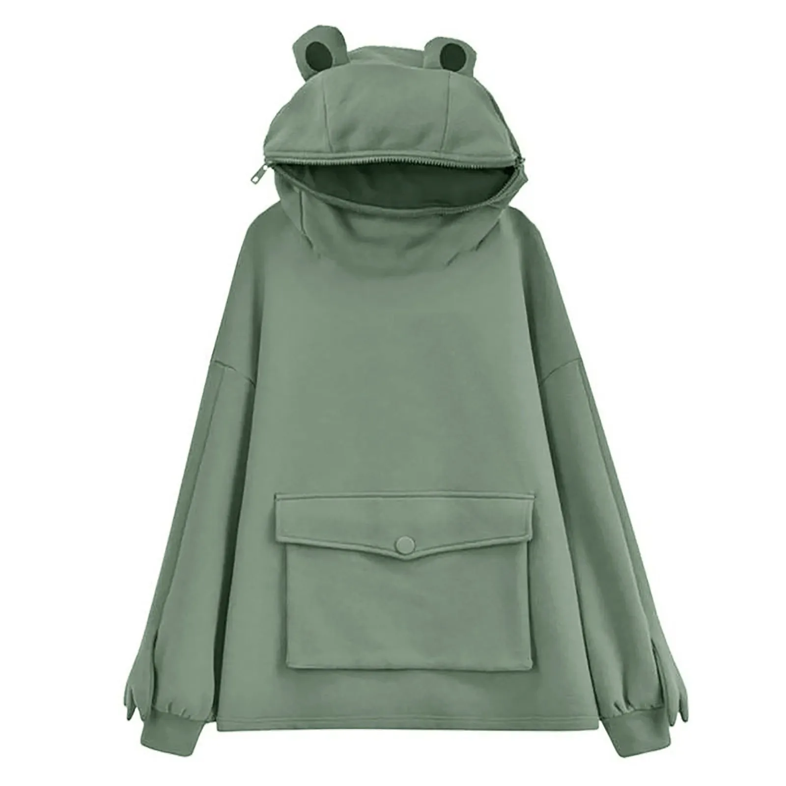Женская толстовка с капюшоном Kawaii Frog Over size d Harajuku, осенне-зимний Повседневный пуловер с карманами, размера плюс размер