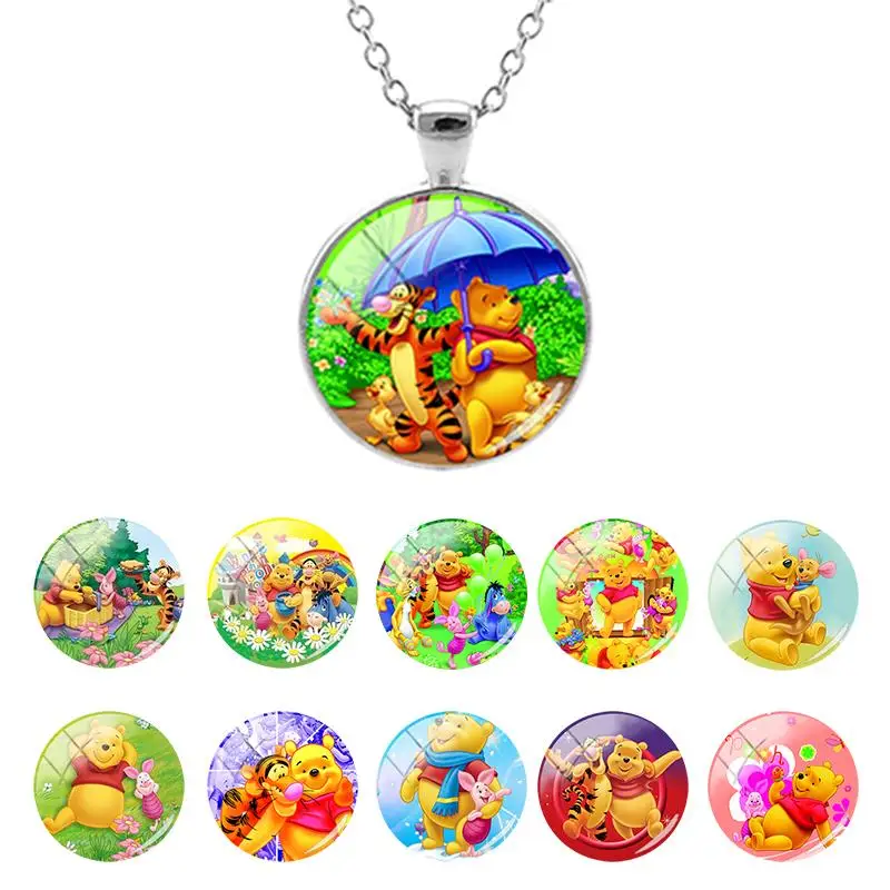 Дисней Пух медведь анимационный узор Трендовое 25 мм стекло купольное ожерелье для милых девушек кабошон ювелирные изделия Высокое качество WN370Фотографии товара:
