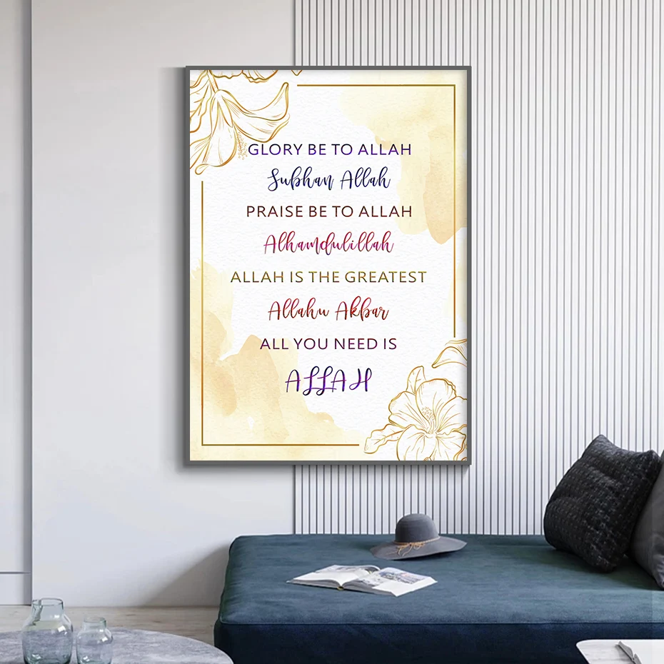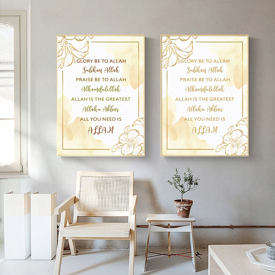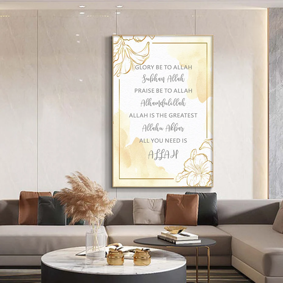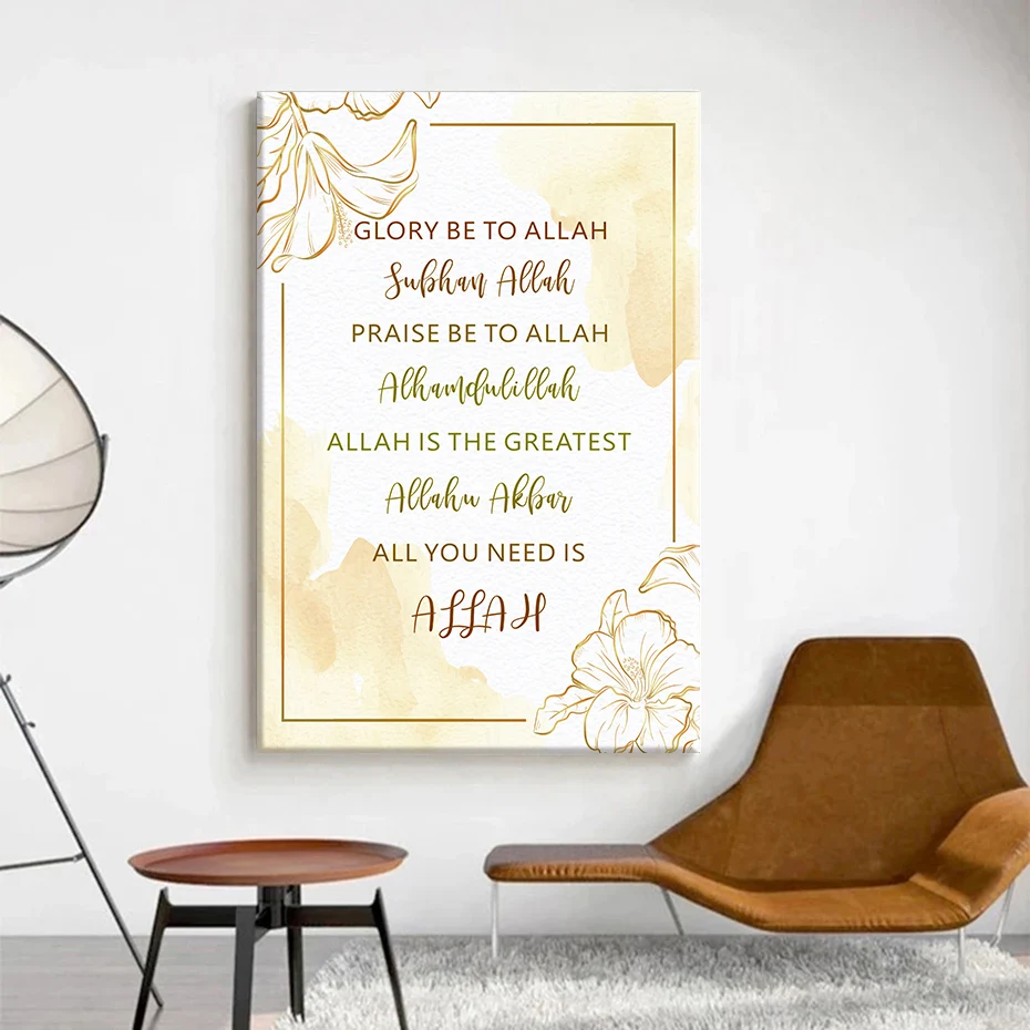 Золотые цветочные принты на холсте и исламские цитаты Аллаха, настенные художественные картины, современные декоративные картины для интерьера гостиной