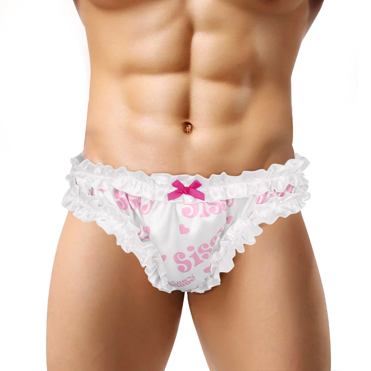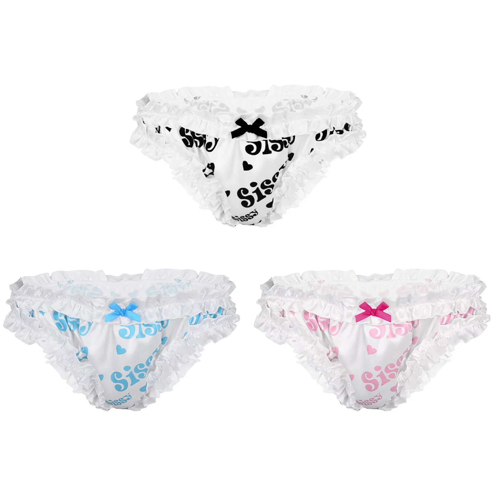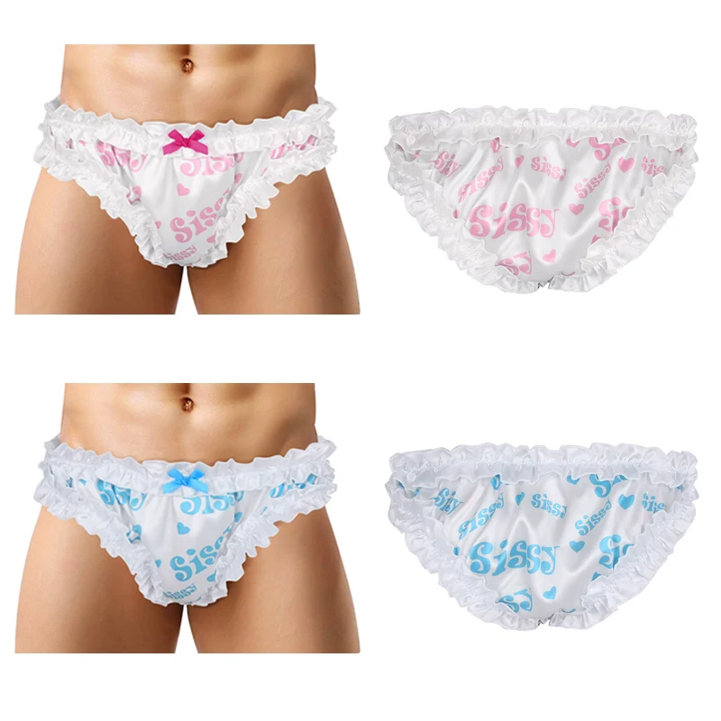 Мужские трусы брифы с бантиком, синие трусы брифы с высоким вырезом, бантиком и надписью, с оборками, нижнее белье для геев,