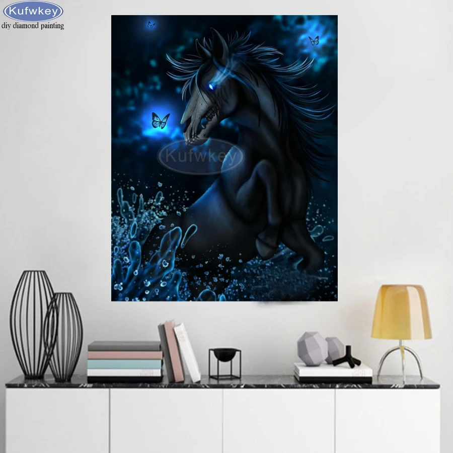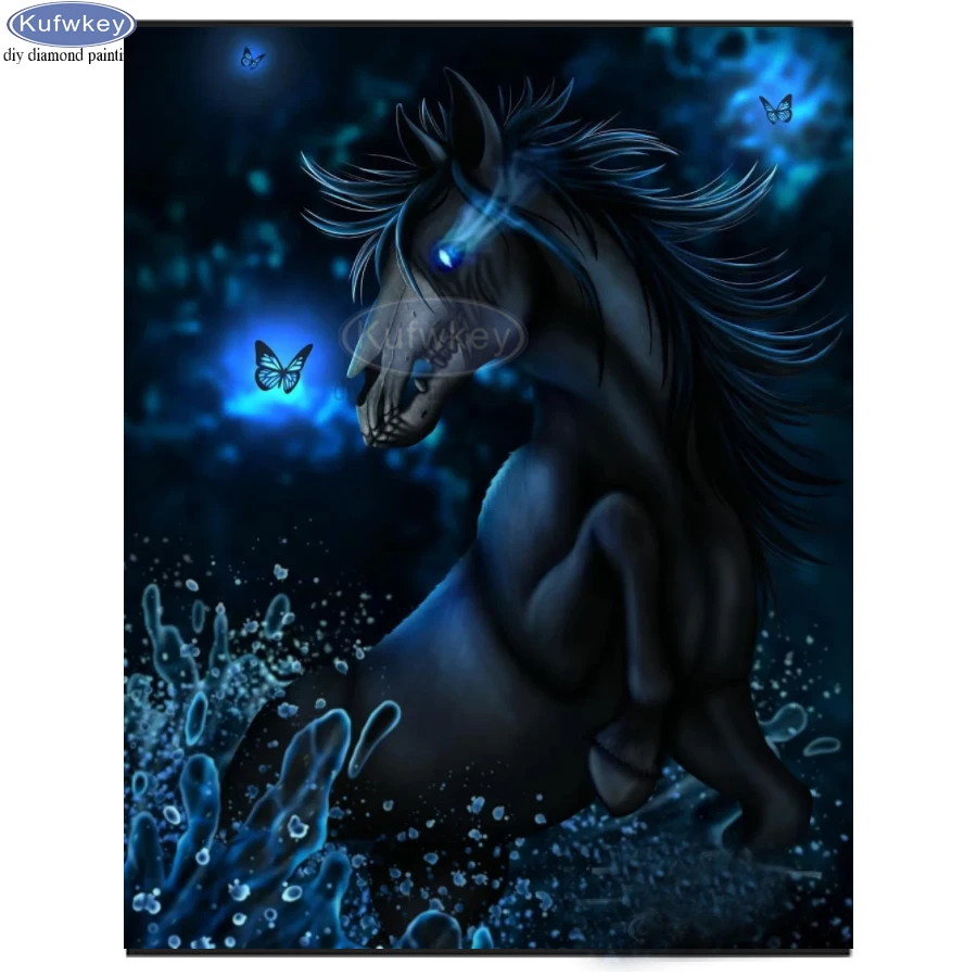 Темный Единорог Бабочка Алмазная живопись полный квадрат 5D Сделай Сам Вышивка крестиком животные Алмазная вышивка инкрустированный дизайн ручной работы