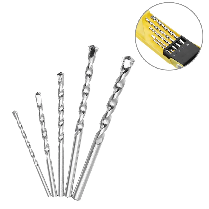 5 шт., размер: 4/5/6/8/10 мм прямой Ударная дрель Круглый хвостовик цемент сверло для стен