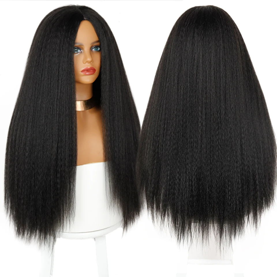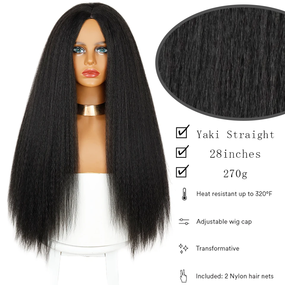 Синтетические Парики Yaki, прямые волосы для женщин, прямые волосы Yaki, длинный афро-волосы 28 дюймов, парик из термостойкого волокна, африканский парик
