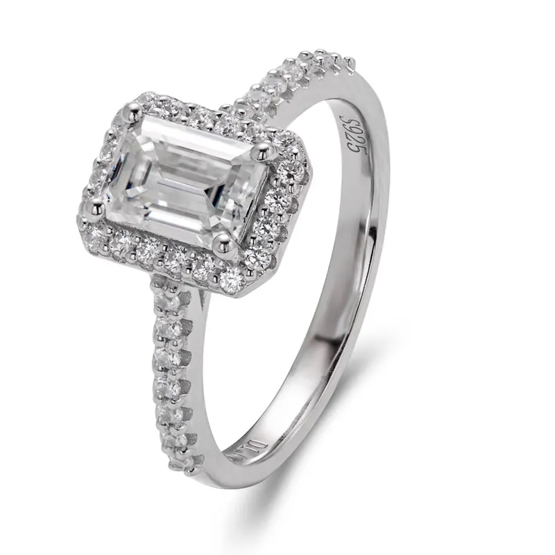Кольцо с муассанитом квадратное, серебро 925 пробы, 1 карат D