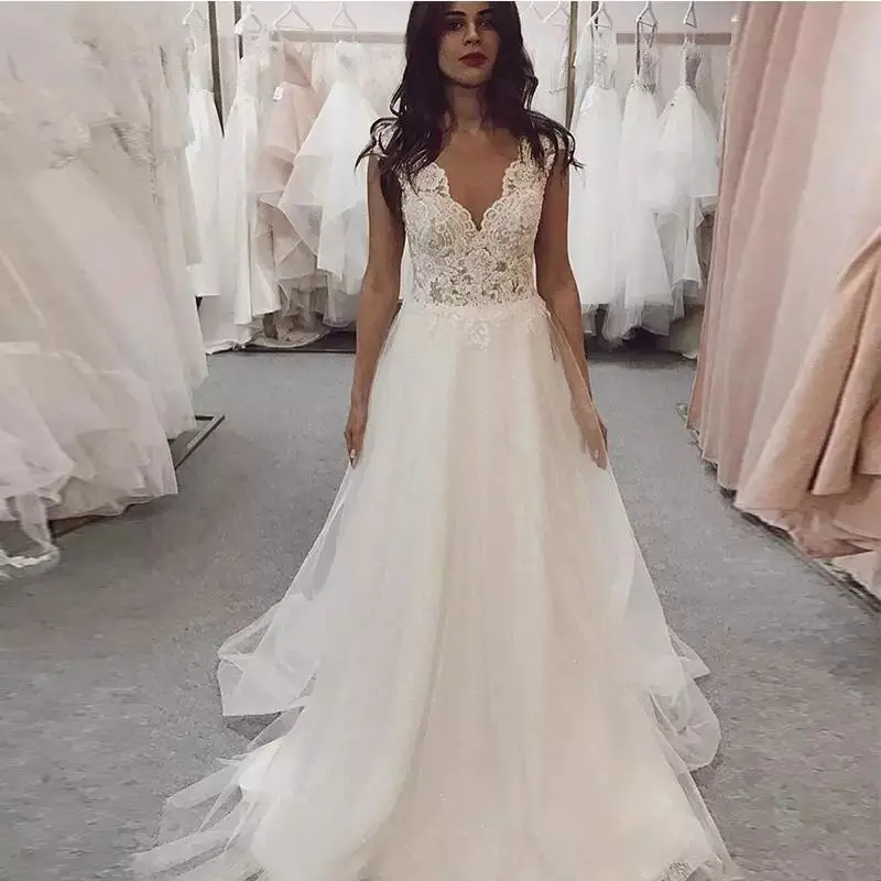 Простые Свадебные платья 2021 сексуальные с V-образным вырезом съем...