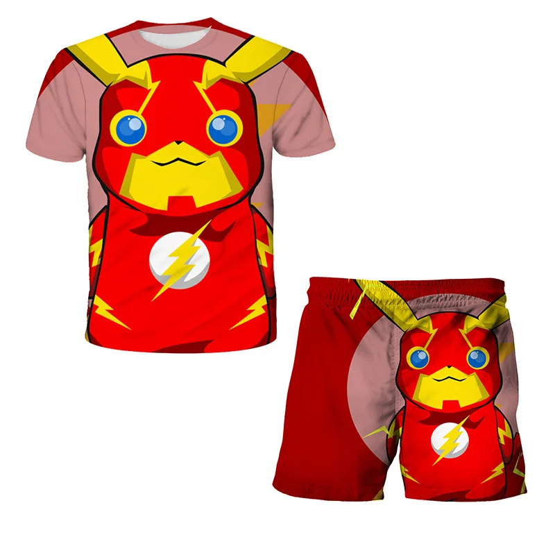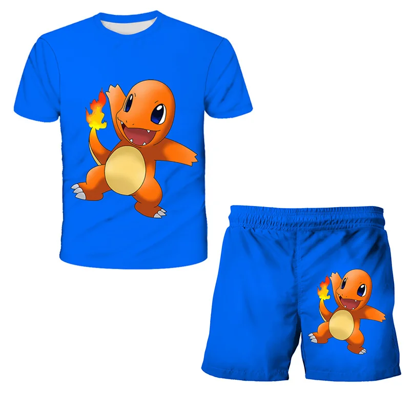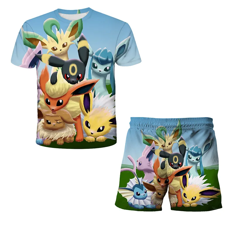 Детские повседневные комплекты, летние комплекты с 3D покемонами, ф...
