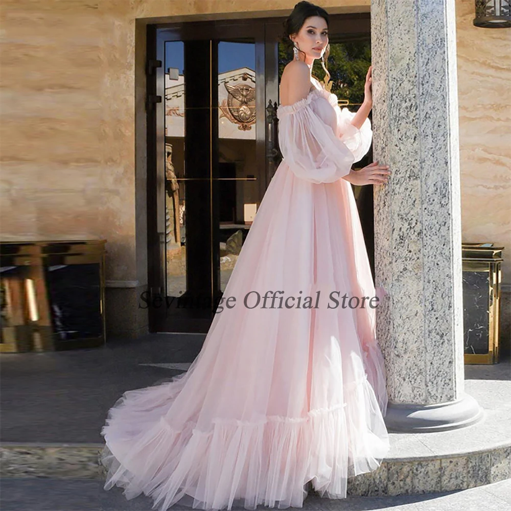 Розовое свадебное платье Sevintage с пышными рукавами, свадебное платье с открытой спиной и открытыми плечами, свадебное платье принцессы