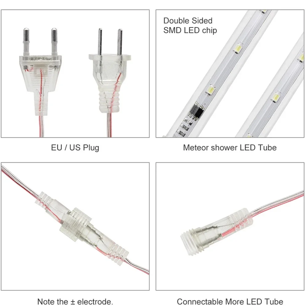 【Романтический светильник метеоритный дождь s】 светодиодный светильник падения дождя s, светильник каждой лампы включается и выключается один за другим последовательно и быстро, как метеоритный дождь или падающий снег в ночном небе, очень красиво. Эти струнные огни icicle могут использоваться в качестве одного или быть подключены (всего пять струнных огней). Если весь светильник с 8 трубами не может прийти на светильник, когда вы подключаете много комплектов, пожалуйста, проверьте, правильно ли соединены соединители для женщин и мужчин.