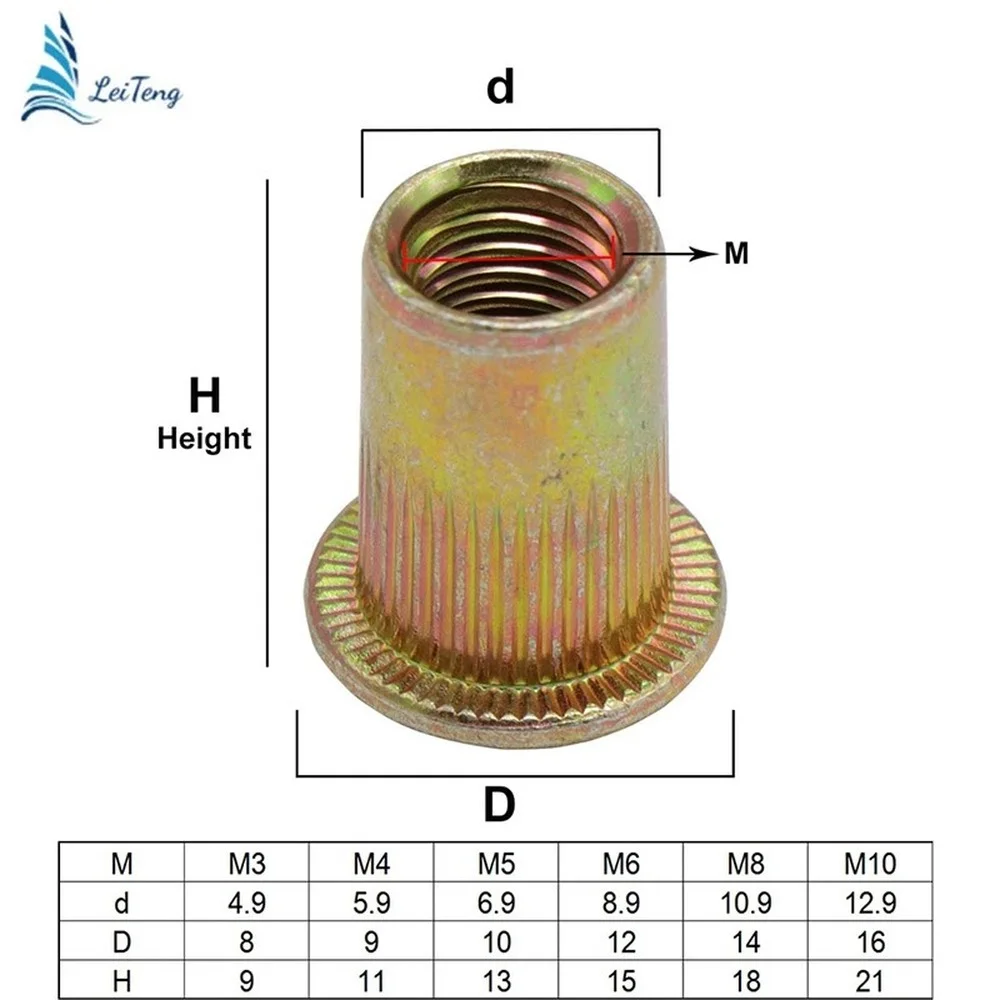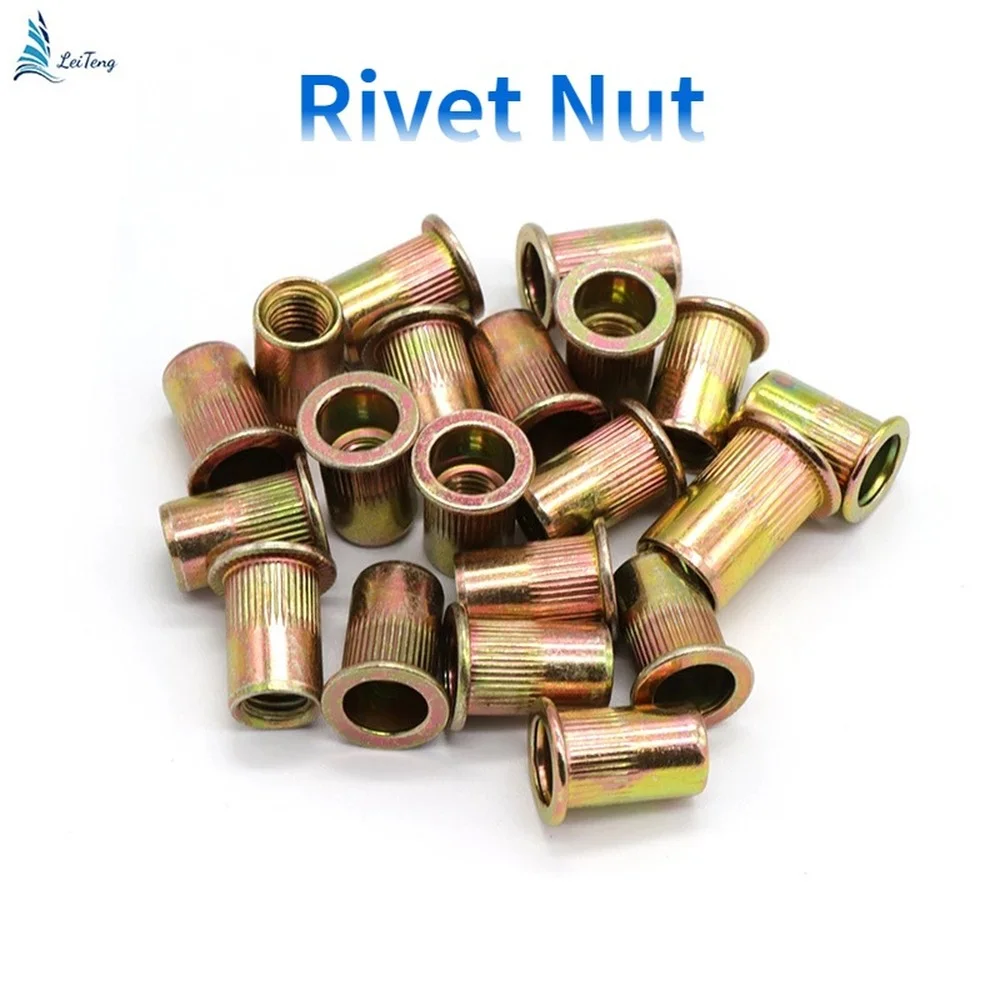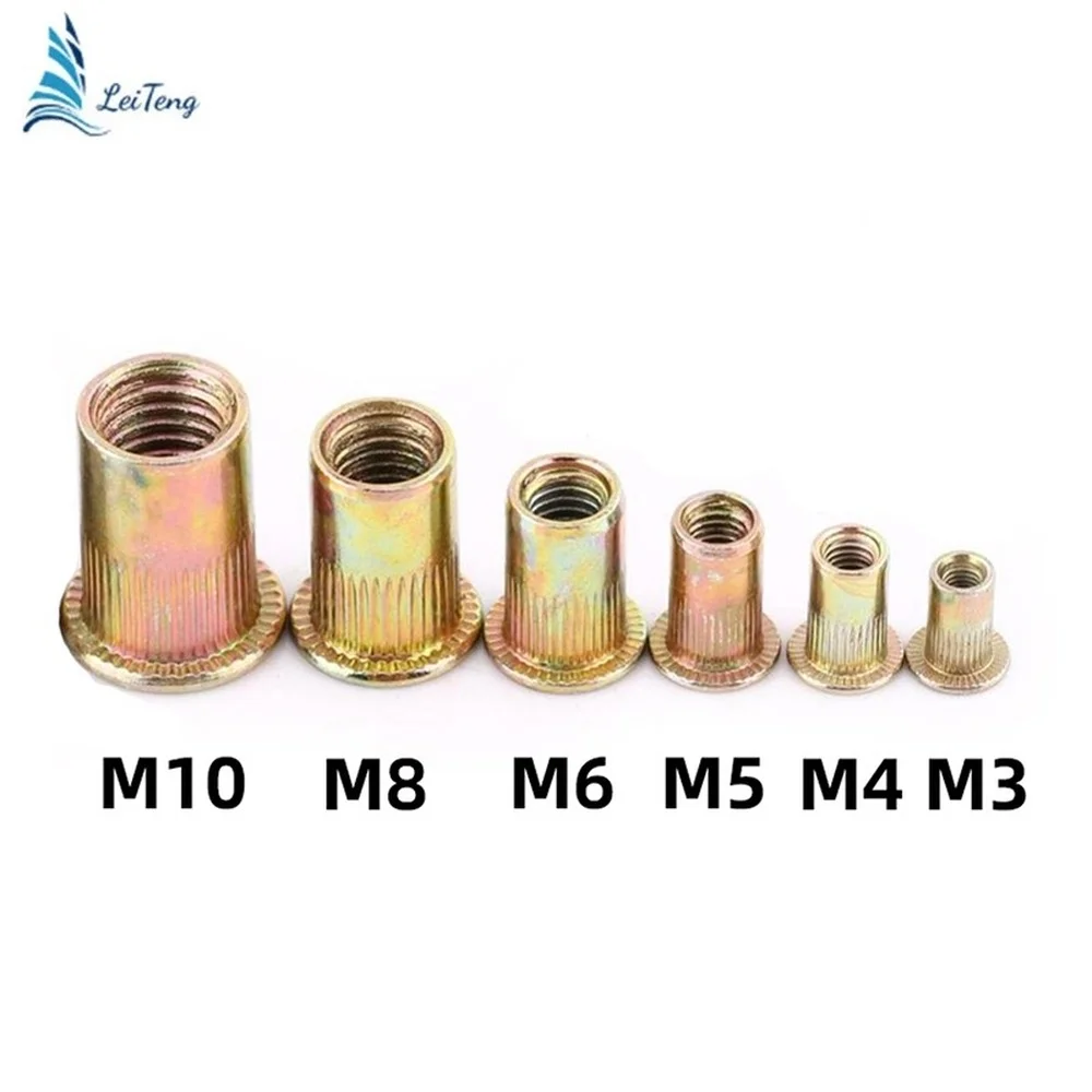 Заклепочные гайки 20 шт.-M3M4M5M6M8 M10M12, оцинкованные заклепочные гайки из углеродистой стали, рифленая плоская головка, зеркальная вставка, гайка для заклепочного пистолета
